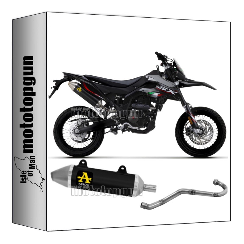 Der Open Arrow Thunder Krümmer aus schwarzem Aluminium mit Edelstahl-Endstück ist ein hochwertiges Bauteil, das entwickelt wurde, um die Leistung deiner Aprilia RX - SX 4T 125, Modelle von 2018 bis 2020, zu verbessern. Diese homologe, katalysierte Komplettauspuffanlage bietet ein perfektes Gleichgewicht zwischen Ästhetik und Funktionalität, garantiert einen kraftvollen Sound und eine Reduzierung des Gesamtgewichts des Fahrzeugs.