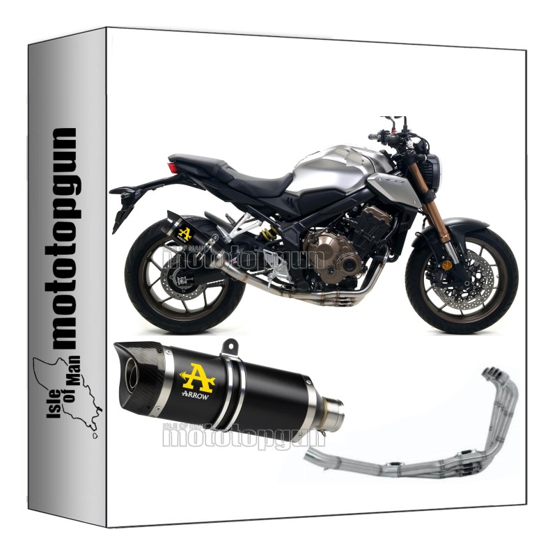 ESCAPE HOMOLOGADO ARROW THUNDER EN ALUMINIO NEGRO CON TAPÓN EN CARBY COMPATIBLE CON HONDA CB 650 R 19/22